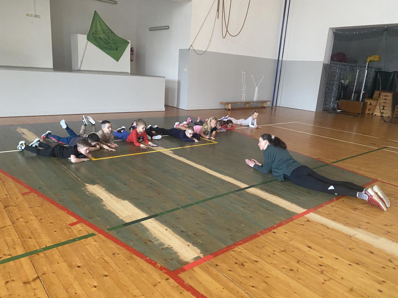 Cvičení předškoláků v ZŠ Masarykova - Krteček a Maková panenka