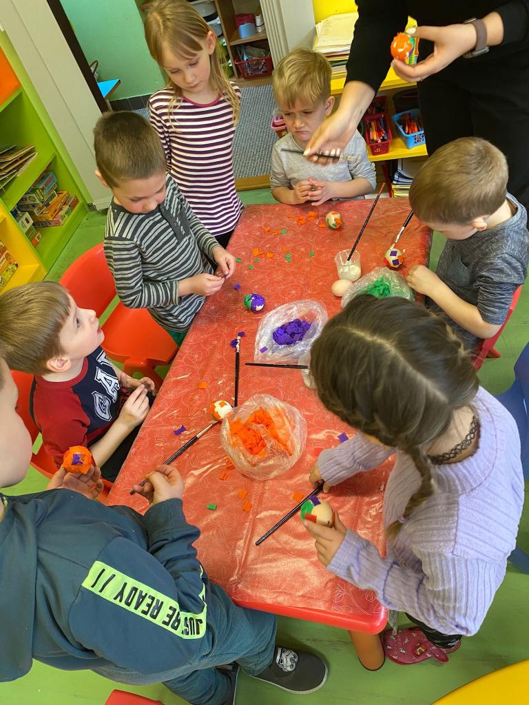 Během uplynulých týdnů jsme se s dětmi věnovali tématům jara a Velikonoc. Společně jsme vyráběli Moranu, kterou jsme se rozloučili se zimou, zdobili velikonoční vajíčka a tvořili barevné jarní květiny. Děti si užily spoustu tvoření, objevování i radosti z přicházejícího jara.