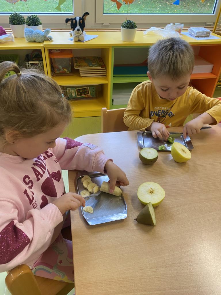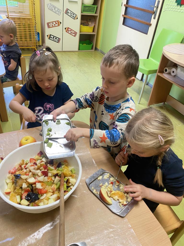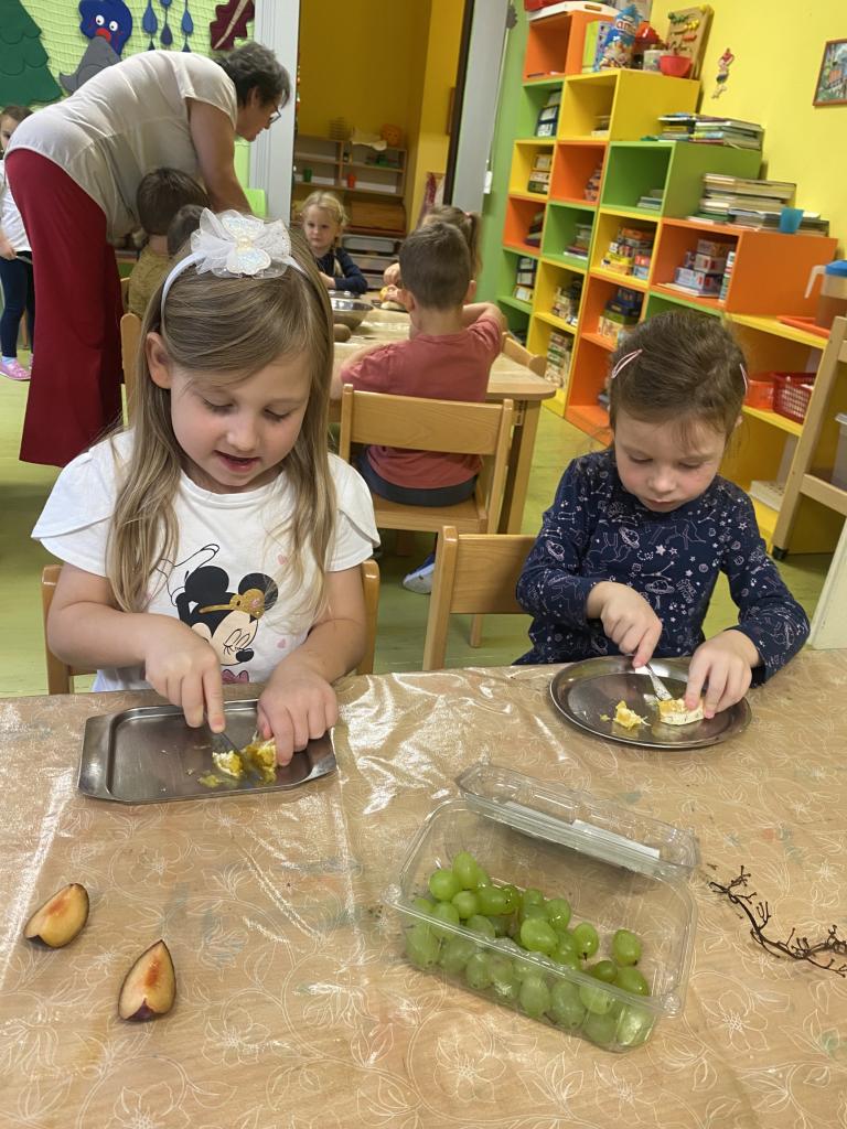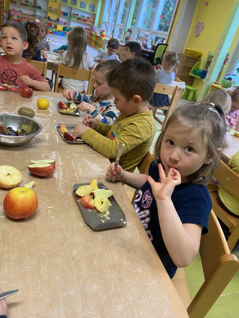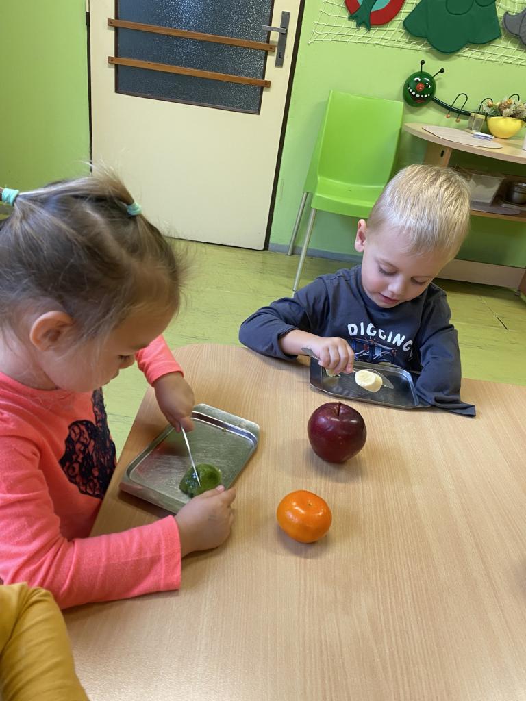 Tento týden se děti seznamovaly s ovocem všemi smysly. Tvořily, ochutnávaly, krájely, zkoumaly, stavěly a hledaly ovocné stromy v přírodě. Také si vyzkoušely zatančit mazurku.