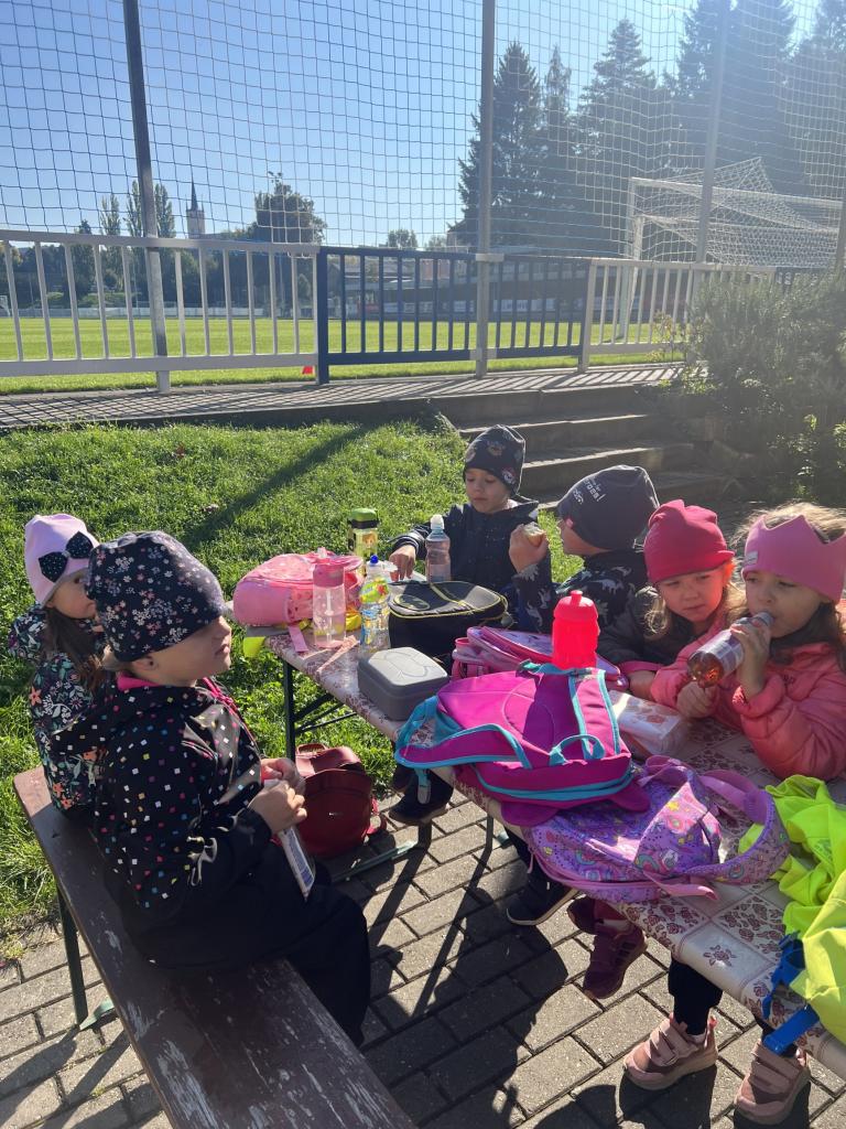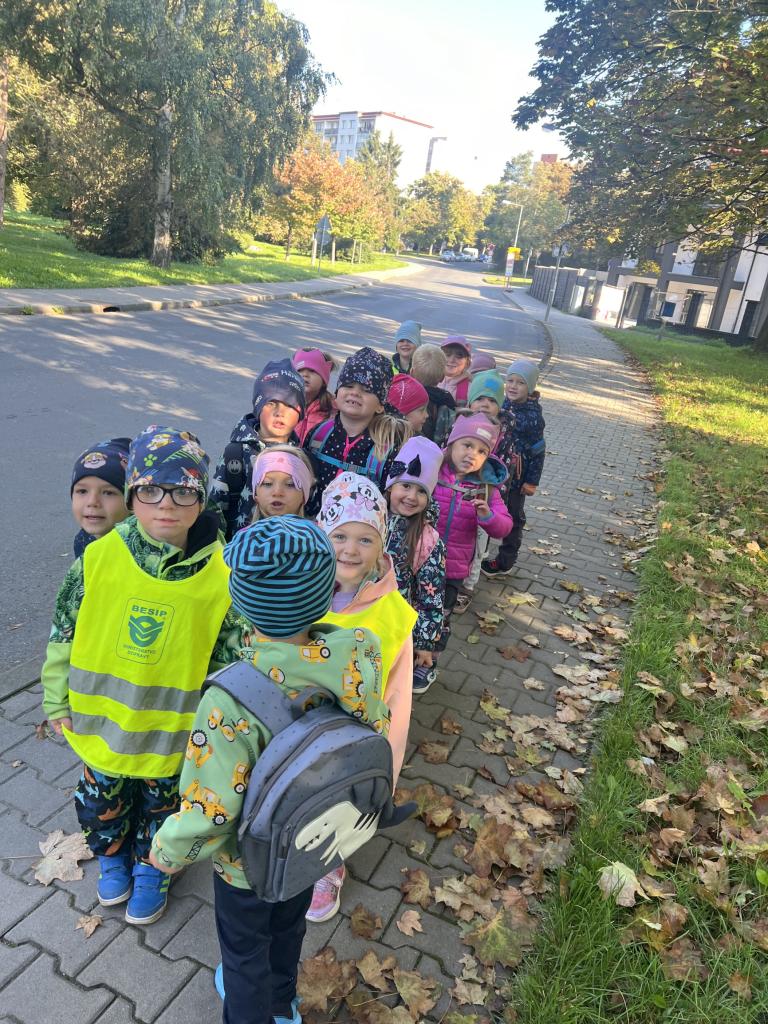 Na našem prvním batůžkovém výletu do Vodrant jsme pozorovali přírodu kolem nás, poslouchali zvuky ptáků a poznávali listnaté i jehličnaté stromy. Po cestě jsme se posilnili malou dobrotou. Házeli jsme šiškou do stromu a nakonec jsme si zahráli pohybové hry "Na veverky". Náramně jsme si výlet užili