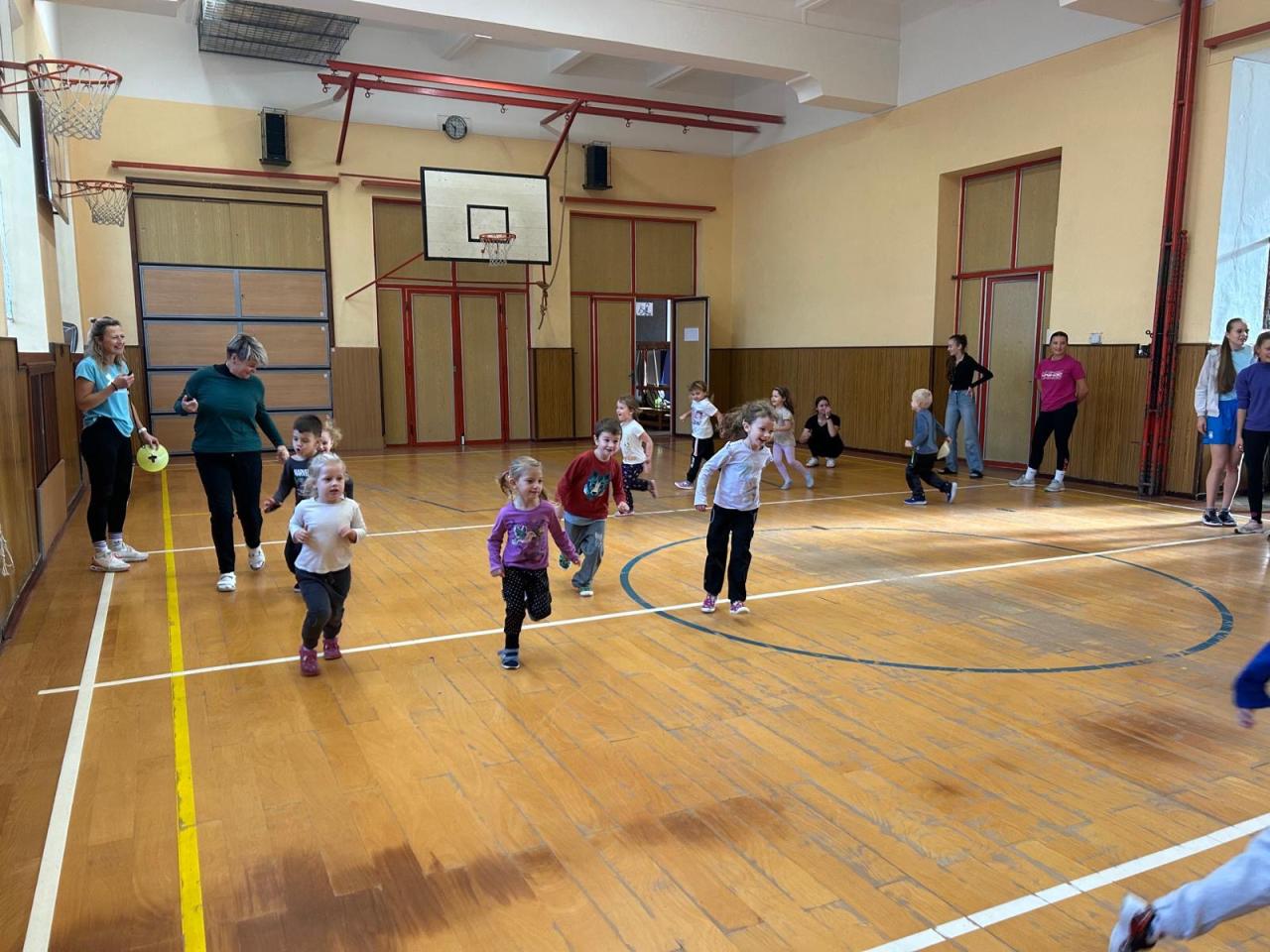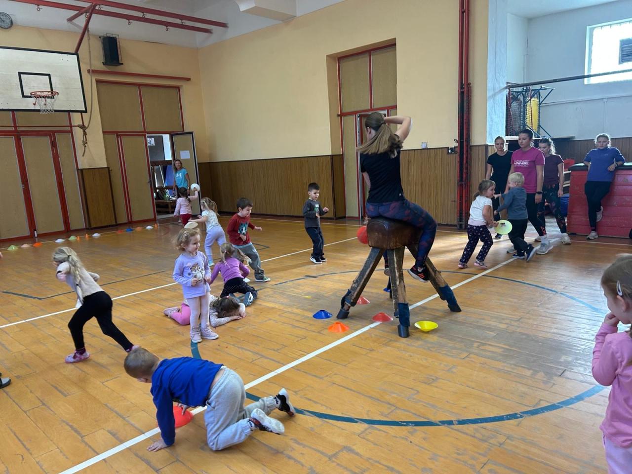 Studenti SOŠPg si pro nás připravili sportovní zábavu formou stanovišť, hráli jsme zajimavé pohybové hry, zkusili jsme si kruhy, trampolíny a moc nás to bavilo.
