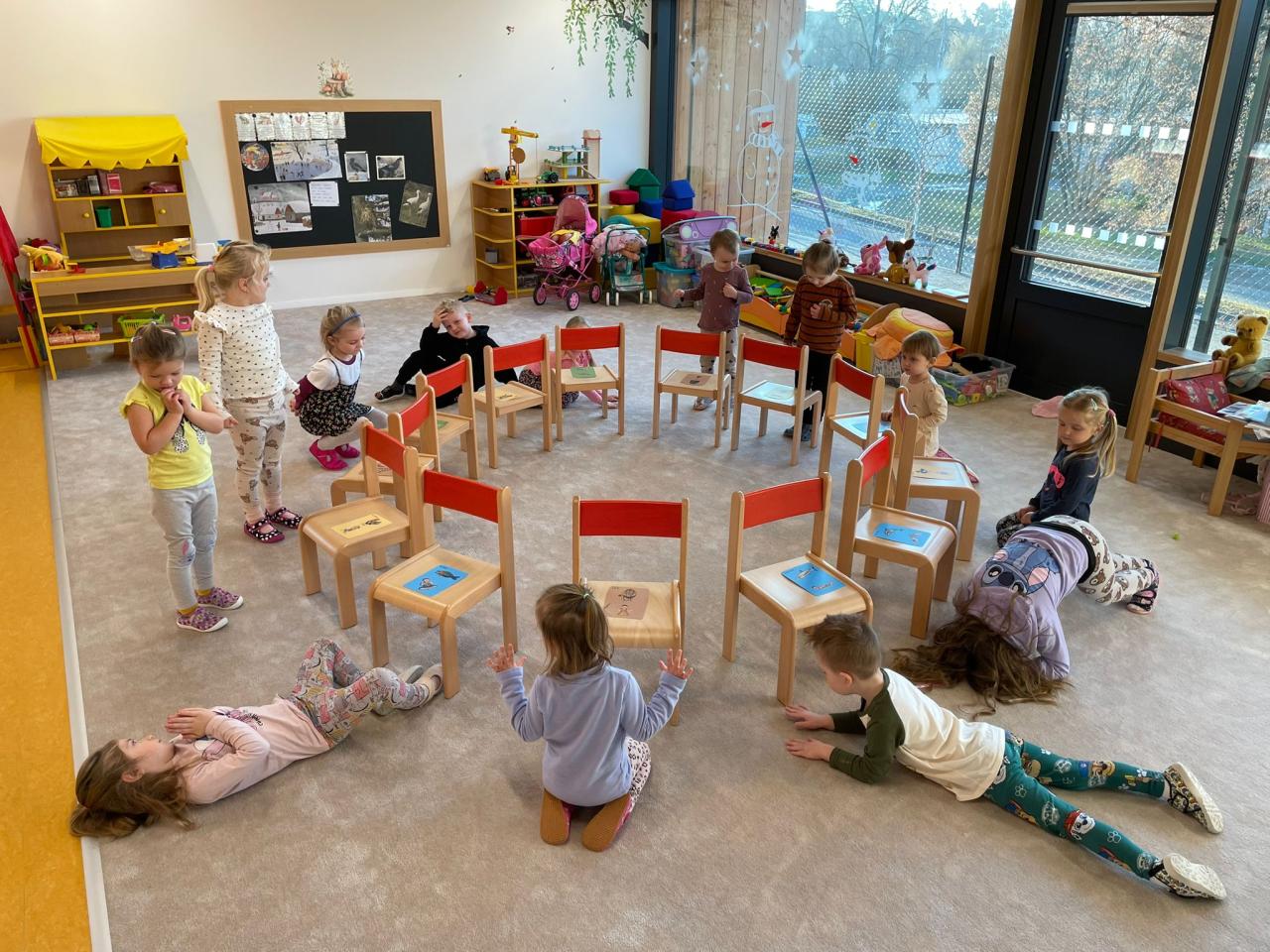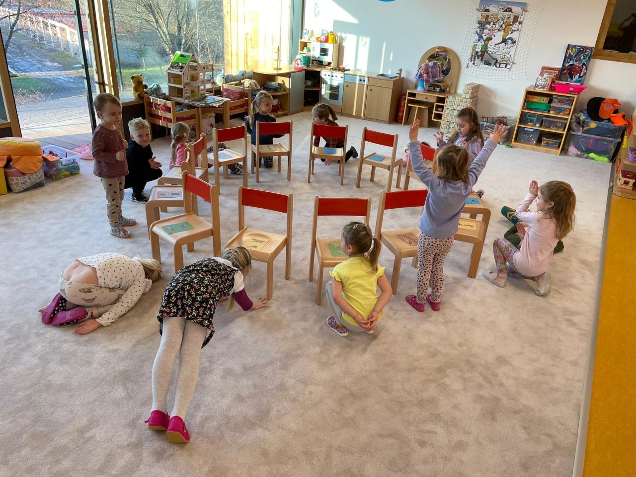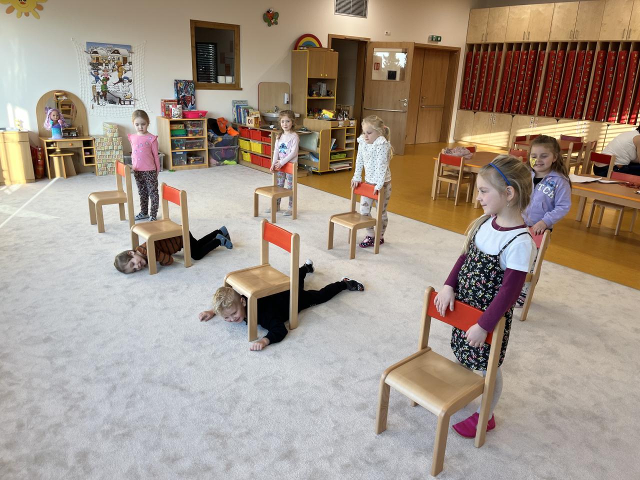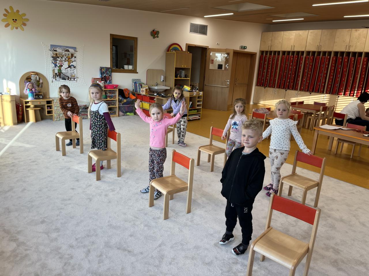 S dětmi si povídáme o ptácích, kde bydlí, čím se živí a k čemu jim slouží peří. Skládáme tematické puzzle, cvičíme - dětská jóga v kruhu, hry na prostorovou orientaci. Starší a předškolní děti procvičují pojmy (vedle, za, před, v)